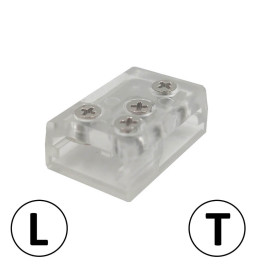 Transparent solderless quick connector L&T for non-waterproof IP20 COB and SMD strips with 10mm PCB. Our IP20 quick connector allows connections to be made on LED strips without the need for soldering by simply tightening the clips on the side of the connector. Super easy to fit. As it is transparent, the joints are not visible.