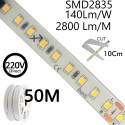 LED Strip 220V | 20W/M | 140xLED/m | 50m | SMD2835 | 2660Lm/M | IP67 | Cut every 10cm