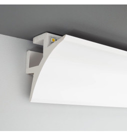 The Polystyrene Molding is specifically designed to incorporate aluminum profiles with LED strips, offering a decorative solution that transforms any space with indirect and decorative lighting. This product allows for the creation of spectacular effects in interior decoration, adding not only light but also elegance and dynamism. By integrating lighting profiles inside, this molding transforms ceilings and walls into true works of art, integrating linear shapes with a soft glow of light.