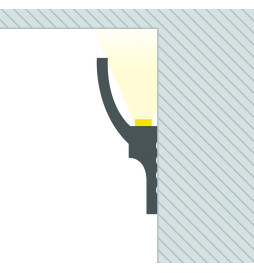 The molding offers endless creative possibilities, allowing for compositions that add an extra dimension to interior decoration. Whether in a living room, bedroom, restaurant, or commercial space, the indirect lighting provided by this molding adds a modern and sophisticated touch to any environment. With a little creativity, you can transform even the simplest spaces into cozy and visually impactful settings.