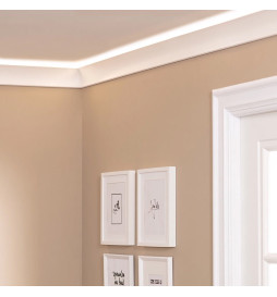 The Polystyrene Molding is specifically designed to incorporate aluminum profiles with LED strips, offering a decorative solution that transforms any space with indirect and decorative lighting. This product allows for the creation of spectacular effects in interior decoration, adding not only light but also elegance and dynamism. By integrating lighting profiles inside, this molding transforms ceilings and walls into true works of art, integrating linear shapes with a soft glow of light.