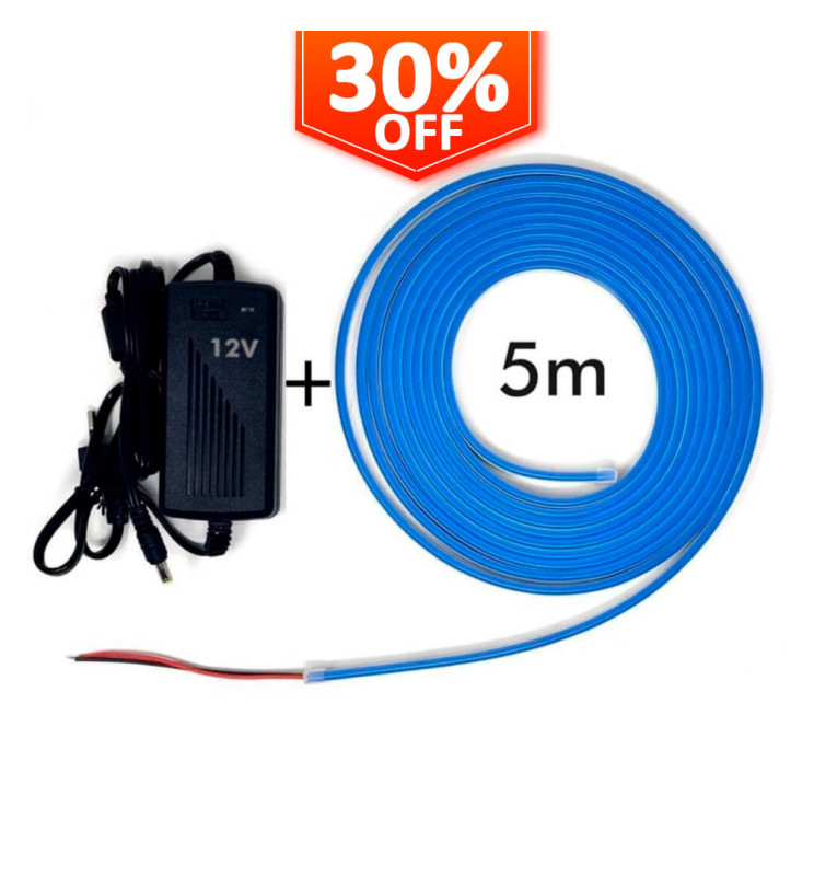 Pack Neon Blue LED Strip 6mm 12V + Power Supply
