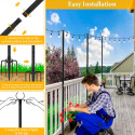 El pack contiene 6 soportes, 12 tornillos, 2 bases de pincho y 2 bases planas, asegurando una instalación firme en cualquier superficie. Esta flexibilidad en la instalación garantiza una iluminación decorativa eficiente para eventos, terrazas y jardines, brindando un ambiente acogedor y elegante en cualquier espacio exterior.