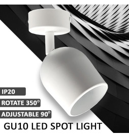 Aplique LED 8W de techo o pared orientable con bombilla GU10 incluida, regulable por TRIAC. Ofrece una óptica de cristal con ángulo de 24º, diodo SMD1A1A de alta eficiencia (150Lm/W) y un CRI>98 para una reproducción de color excepcional. Su diseño funcional y fácil instalación permiten dirigir la luz cálida en cualquier dirección, ideal para rincones de lectura, escaparates o presentaciones de productos.