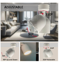 Su diseño totalmente orientable permite dirigir la luz en prácticamente cualquier dirección, ofreciendo máxima flexibilidad. Esto lo convierte en una herramienta versátil para resaltar productos en escaparates, iluminar áreas de trabajo, dirigir la luz en un rincón de lectura o adaptarse a cambios en la disposición del espacio. -