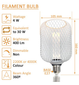 La bombilla está fabricada en material de aluminio de alta calidad, lo que le da un aspecto vintage y retro. Su potencia de 4W es perfecta para conseguir zonas acogedoras y relajadas.