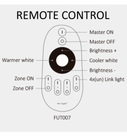 El mando a distancia "Mi-Light" te permite ajustar fácilmente la intensidad y temperatura de color de tus luces, desde blanco cálido hasta frío, en hasta 4 zonas distintas. Personaliza la iluminación a tu gusto creando combinaciones y grupos según lo que necesites.