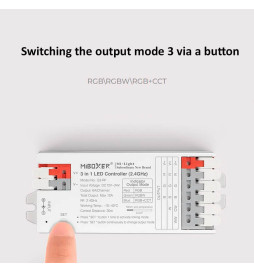 Una de las características destacadas de este pack es su capacidad para cambiar entre tres modos de salida diferentes: RGB, RGBW, y RGB+CCT. Esto se puede realizar de manera sencilla mediante un botón, permitiéndote adaptar la iluminación a diversas necesidades y preferencias con solo un toque. Ya sea que busques la vivacidad de los colores RGB, la adición del blanco en RGBW, o la capacidad de ajustar la temperatura del color en RGB+CCT, esta controladora tiene la flexibilidad para adaptarse a cualquier situación.