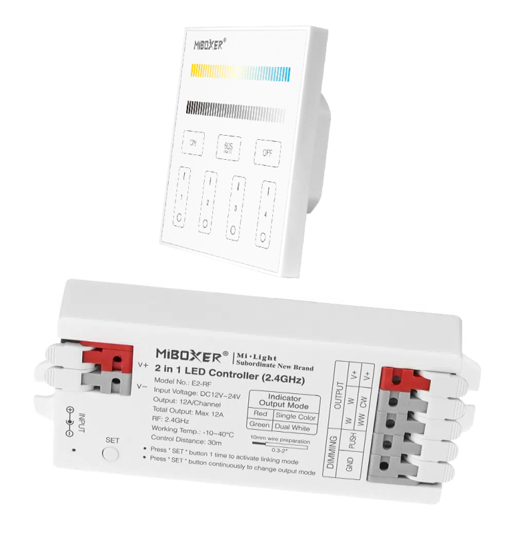 - Compatible con la serie MiBoxer/Mi-Light 2.4G, permitiendo la integración con otros dispositivos de la misma serie.