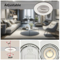 Foco blanco empotrable LED Circular orientable con 7W de potencia. Con un ángulo de apertura de 60º, por lo que la iluminación es más directa para centrar la luz un puntos específicos. Destaca por que puede girar 360º y rotar 24º consiguiendo dar una iluminación a cualquier espacio que interese.