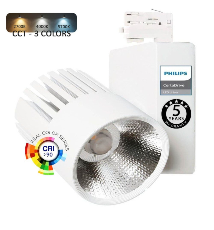 Foco LED 40W UPPSALA Blanco - Philips Certa Drive - 3CCT - Carril Trifásico - CRI+98 - 5 Años Garantía