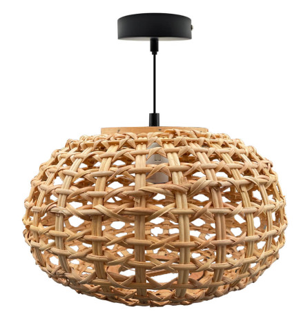 La lámpara está fabricada en material mimbre de alta calidad, con un acabado natural que le da un aspecto cálido y acogedor. El cable de suspensión es ajustable, por lo que puede adaptar la altura de la lámpara hasta los 120cm.