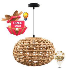 Compra tu lámpara colgante de mimbre para bombilla E27 hoy mismo y disfruta de una iluminación natural y elegante en tu hogar. La lámpara NO incluye bombilla, para revisar nuestras bombillas E27 acceda por el botón: