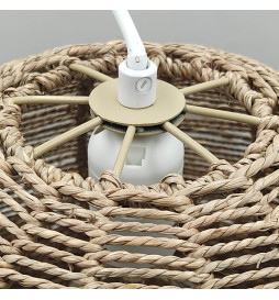 La lámpara está fabricada con Seagrass natural; es una fibra natural que crece en el agua. Los tejidos que se producen con este material son muy resistentes y elegantes, generalmente de Asia, que se entrelazan para formar una estructura única y distintiva. Esta técnica de construcción no solo realza su apariencia estética, sino que también le confiere una durabilidad excepcional.