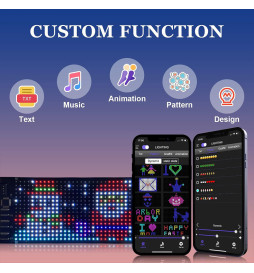 2. Control Intuitivo y Versátil: El control del display se realiza de manera intuitiva a través de una APP Bluetooth inalámbrica (iPixel Color) , lo que te ofrece la libertad de ajustar la configuración desde cualquier lugar dentro del rango de conexión. La aplicación te permite explorar y experimentar con diferentes opciones de iluminación, desde la selección de colores y patrones hasta la programación de efectos que reaccionan al ritmo de la música, creando un ambiente envolvente y personalizado.