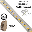 Tira LED 220V | 120xLED/m | 20m | SMD2835 | 1540Lm/M | 14W/M | IP67 | Corte cada 10cm