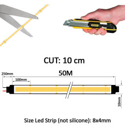 Tira LED COB 220V | 840 LED/m | 50m | FLIP CHIP | 1600Lm/M | 20W/M | CRI90 | IP67 | Corte 10cm
