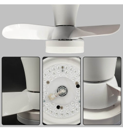 Construido con 3 aspas de ventilador de ABS, este ventilador opera silenciosamente, con un nivel de ruido de apenas 50 dB máximo. Además, su sistema de iluminación integrado ofrece una potencia de 28W, con una salida de luz de 3000lm, opción de temperatura de color seleccionable (CCT), y un índice de reproducción cromática (CRI) de 80, asegurando una iluminación brillante y de alta calidad.