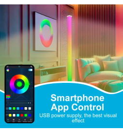 Tämä lattiavalaisin tarjoaa vaikuttavan valikoiman värejä ja valotehosteita 5050 RGB digitaalisen LED-nauhan ansiosta. 16 miljoonan sävyn valinnan avulla voit säätää valaistusta mielialasi tai tilaisuuden mukaan, räätälöiden tilasi maksimaalisesti.