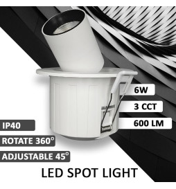 Downlight LED 6W - SUUNTAAN KÄÄNTÄVÄ PERISKOOPI - Pyöreä - CCT Valittava Väri