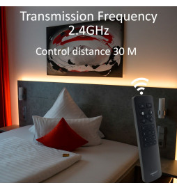 - **Laajennettu hallintaetäisyys:** Jopa 30 metrin tehokkaan kantaman ansiosta voit hallita valojasi mistä tahansa huoneesta tai jopa toisesta huoneesta.