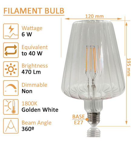 LED-filamenttila -CONIC- Koristeellinen 6W E27 - Meripihka - BIG Ø120mm