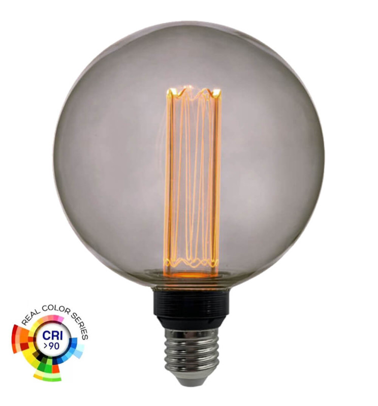 Tämä savulasista valmistettu G125-lamppu, jonka teho on 4W ja jonka sisäpuolelle on kaiverrettu PMMA, ja jossa on E27-asennussarja, auttaa kunnioittamaan maapalloa energiansäästönsä ansiosta. Lampussa on moderni ja tyylikäs muotoilu, ja sen musta metallikotelo sopii täydellisesti mihin tahansa sisustukseen.