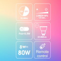 Dikroinen LED RGB + 3000K - 8W 110º GU10 kaukosäätimellä