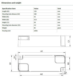 Syöttöjännitteellä AC220–240V (210mA) ja lähtöjännitteellä DC30–42V (1050mA) se tarjoaa tasaisen virransyötön, joka optimoi LEDien suorituskyvyn ja käyttöiän. Sen korkea tehokerroin (PF > 0,98) parantaa energiatehokkuutta ja takaa vilkkumattoman valaistuksen.