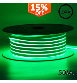 Joustava LED Neon 24V - 13W/m - Kela 50m - 6x12mm - Vihreä