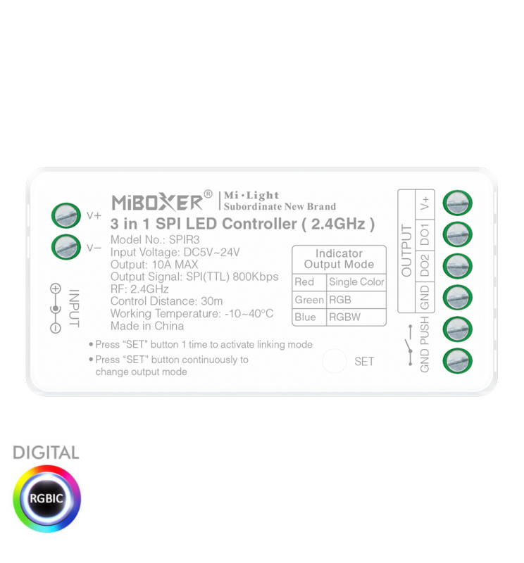Digitaalinen LED-ohjain SPI RGB + RGBW + RGBIC LED-Nauhoille - 2,4GHz - 5-24V