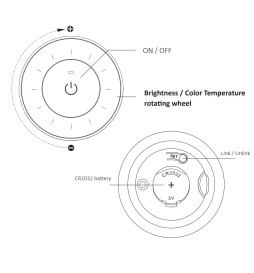 • High-Precision Rotary Dial: Equipped with an ergonomic rotary dial, this remote allows you to precisely adjust the brightness intensity or color temperature of the light. By default, the dial controls brightness, but by holding down the "ON/OFF" key for 3 seconds, the dial switches to color temperature adjustment mode, providing additional flexibility in lighting configuration.