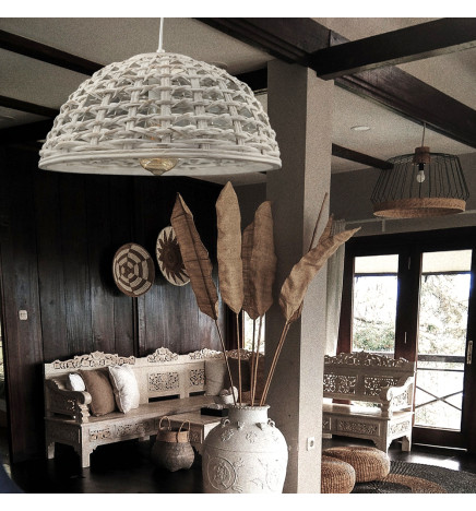 Valaisin on valmistettu korkealaatuisesta pajumateriaalista, jonka luonnollinen viimeistely antaa sille lämpimän ja kodikkaan ilmeen. Ripustusvaijeri on säädettävissä, joten voit säätää valaisimen korkeutta jopa 120 cm:iin.