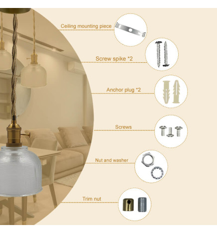 Lasinen riippuvalaisin E27-lamppuun on tyylikäs ja monipuolinen vaihtoehto mihin tahansa sisätilaan. Sen yksinkertainen, minimalistinen muotoilu sopii mihin tahansa sisustustyyliin klassisesta moderniin. Sen lisävarusteet, kuten pistorasia ja koriste, ovat pronssinvärisiä.