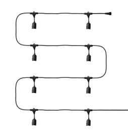 Valoketju on varustettu vesitiiviillä E27-kannoilla (IP65), jotka suojaavat sateelta, kosteudelta ja pölyltä. Sen korkealaatuinen kaapeli takaa turvallisen ja pitkäikäisen käytön ulkotiloissa.