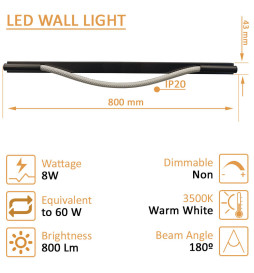 Valaise sisätilasi ainutlaatuisella ja elegantilla tavalla huippuluokan LED-seinävalaisimellamme. Tämä valaisin yhdistää LED-teknologian tehokkuuden houkuttelevaan suunnitteluun, joka korostaa kodin modernia estetiikkaa. Lämpimällä 3500K valolla luot kodikkaan ja miellyttävän ilmapiirin olohuoneeseesi, makuuhuoneeseesi tai mihin tahansa nurkkaan haluatkin kiinnittää huomiota.