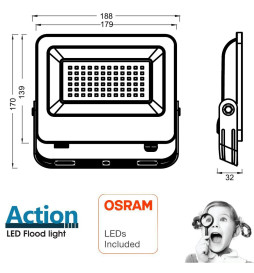 LED-tulvavalaisin - 50W - ACTION PRO - OSRAM CHIP DURIS E2835