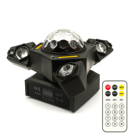 80W LED Moving Head PRO BEAM RGBW-tekniikalla ja sisäänrakennetuilla punaisilla, vihreillä ja sinisillä laser-efekteillä. Varustettu useilla kirkkailla LED-valoilla, taikapallolla ja irisoivalla LED-renkaalla visuaalisesti vaikuttavaa show'ta varten. Ihanteellinen DJ:ille, lavoille ja ammattilaistapahtumiin. Yhteensopiva DMX512:n (20 kanavaa) kanssa, mukana master/slave-, automaatti- ja ääniohjaustilat. Erittäin pehmeä himmennys 0–100 %. Sisältää nopean strobovalon ja kaukosäätimen.