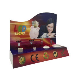 Pieni näytteilleasettaja. Tämän näytteilleasettajan avulla voit sytyttää useita lamppuja samanaikaisesti erityyppisillä alustoilla: GU10, MR16, E14 ja E27. Tuote, joka vie vähän tilaa ja näyttää paljon.