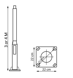 Välitön palvelu: Pylväs, masto, tanko katuvalaistukseen, asuinalueisiin, tienvarsiin, kaupunginosiin. Valmistettu galvanoidusta teräsputkesta Ø89mm ja Ø60mm, jonka halkaisija on 2mm, maalattu teksturoitu musta - RAL9005 - korkealaatuisella polyesterillä, joka takaa suuren kovuuden ja kestävyyden. Helppo kuljettaa ja asentaa, voidaan asentaa 3 tai 4 osaan, mikä helpottaa huomattavasti yhden henkilön asennusta.