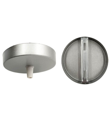 Support de plafond, rosace murale et de plafond, pour lampes suspendues et appliques. Fabriqué en aluminium. Composé par la base, un pont métallique arrière et deux vis pour une fixation correcte. Elle incorpore un trou qui permet le passage de câbles électriques décoratifs d'une section maximale de 2x1,5mm, ainsi que de prisonniers ou de presse-étoupes.