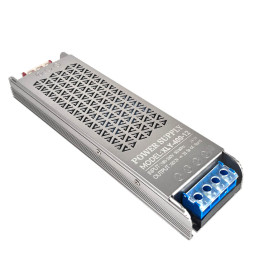 Alimentation Slim 12V 400W 33.3A IP20. Idéale pour rubans LED. Optimisez vos installations LED avec cette alimentation à tension constante 12VDC, alliant haute efficacité, format ultra-fin et design résistant. Son boîtier en aluminium perforé facilite la dissipation thermique, apporte de la légèreté et permet une installation dans les espaces restreints. Parfaite pour rubans LED, elle évite les pics de tension ou de courant pouvant endommager vos luminaires. Puissance fiable et durable dans un format compact.