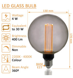 Ampoule LED - Verre fumé moderne - 4W - E27 - G125