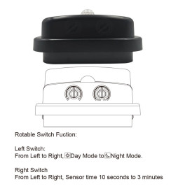 - Interrupteur droit : Durée du capteur réglable de 10 secondes à 3 minutes.