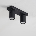 Applique de plafond pour 2x GU10, fabriquée en aluminium de haute qualité avec une finition élégante en noir. Son design permet une orientation de la lumière à 360º, offrant une flexibilité totale pour diriger l'éclairage selon vos besoins.