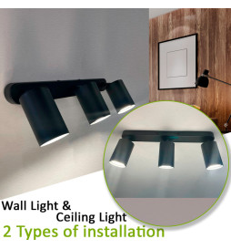 Applique de Plafond Orientable - AMSTERDAM NOIR - Aluminium - pour 3 Lampes GU10