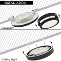 Plafonnier + Downlight LED - Circulaire - BONN Noir - Puissance réglable 12W - 10W - 8W - 6W - 5CCT - SMD2835 140Lm/W - IP44