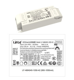 Driver Lifud – Dimmable 0–10V – Pour luminaires LED jusqu’à 40W – Sans scintillement – Sortie 25–42V DC 800–1050mA