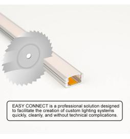 Le système intègre un connecteur de câble manuel de type "clic", permettant une connexion directe et sécurisée au profilé et à l'alimentation, sans outils ni soudure. Cette caractéristique fait de l'EASY CONNECT une option idéale tant pour les installateurs professionnels que pour les intégrateurs de systèmes nécessitant rapidité, flexibilité et fiabilité.