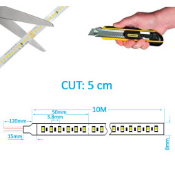 La bande LED professionnelle LONG LUMEN SMD2025 130Lm/W. Avec 280 LED/m et une puissance de 10W/m, cette bande LED 24V garantit un éclairage uniforme et puissant sur toute sa longueur de 10 mètres. Son design avancé élimine les chutes de tension grâce à un système de rétroalimentation intégré, assurant une luminosité constante sans perte. Avec une flexibilité pour les découpes tous les 5 cm sur son PCB de 8 mm, elle est idéale pour les projets d'éclairage linéaire de longue distance. Apportez style et polyvalence à vos projets avec cette solution d'éclairage innovante !